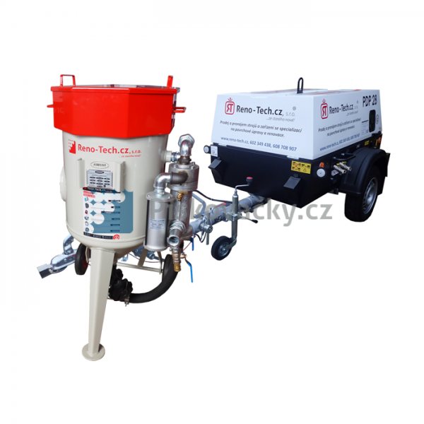 V této nabídce souborů zařízení mobilního tryskání se jedná o master mobilní pískovačku v ultrasonickém provedená a v automatu + vlečný dieselový kompresor od renomovaných českých výrobců, fy. Reno-Tech a ATMOS.
